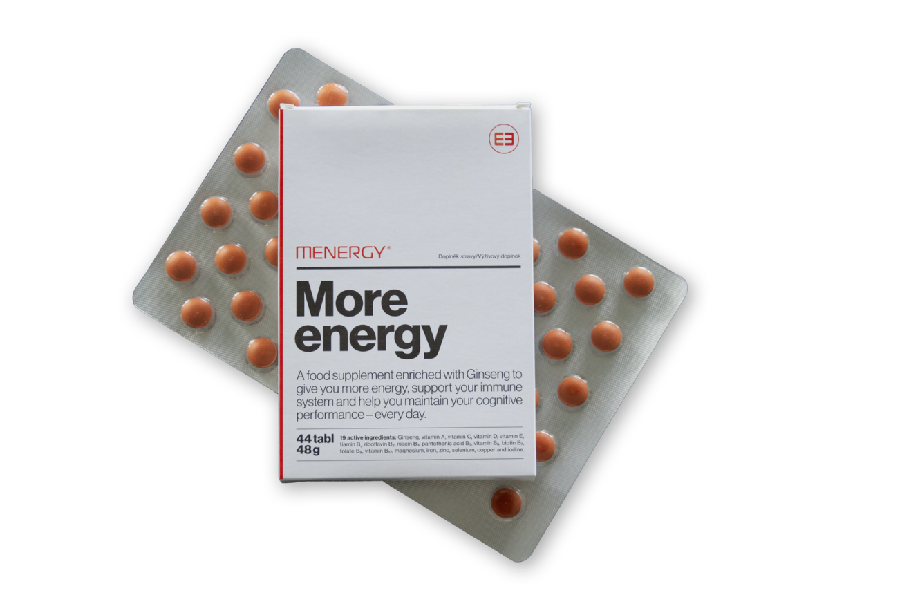 MENERGY on optimaalinen yhdistelmä vitamiineja, kivennäisaineita ja antioksidantteja, sekä energiaa antavaa Ginseng-uutetta.